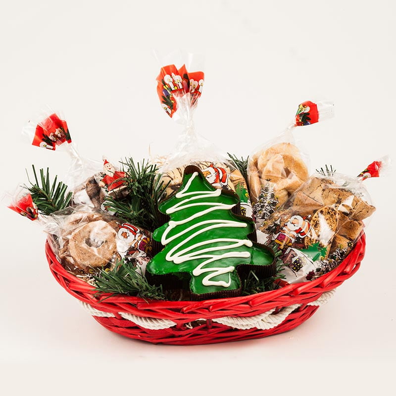 Al suo interno troverai una varietà di prelibatezze: ciambelline al vino rosso e al vino bianco, brutti e buoni croccanti, tozzetti alla mandorla e al cioccolato, oltre a una crostatina a forma di alberello.