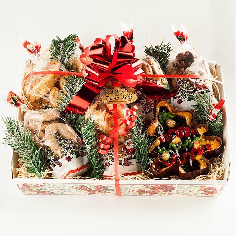 Include dolci tradizionali come le Ciambelline al vino rosso e nocciole, i Brutti e Buoni, i Tozzetti al cioccolato e la Biscotteria da tè natalizia, accompagnati dalla Crostatina a forma di alberello.
