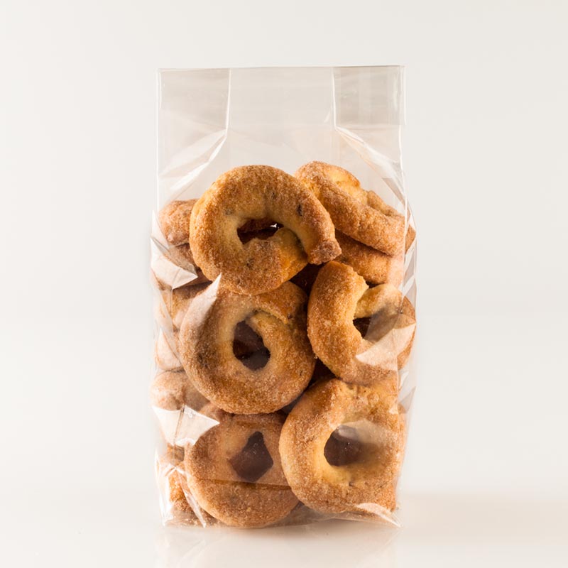 Realizzate con farina di grano tenero, zucchero e vino bianco, queste ciambelline offrono un gusto delicato e leggermente aromatico, grazie alla presenza del vino, che dona un sapore unico e tradizionale.